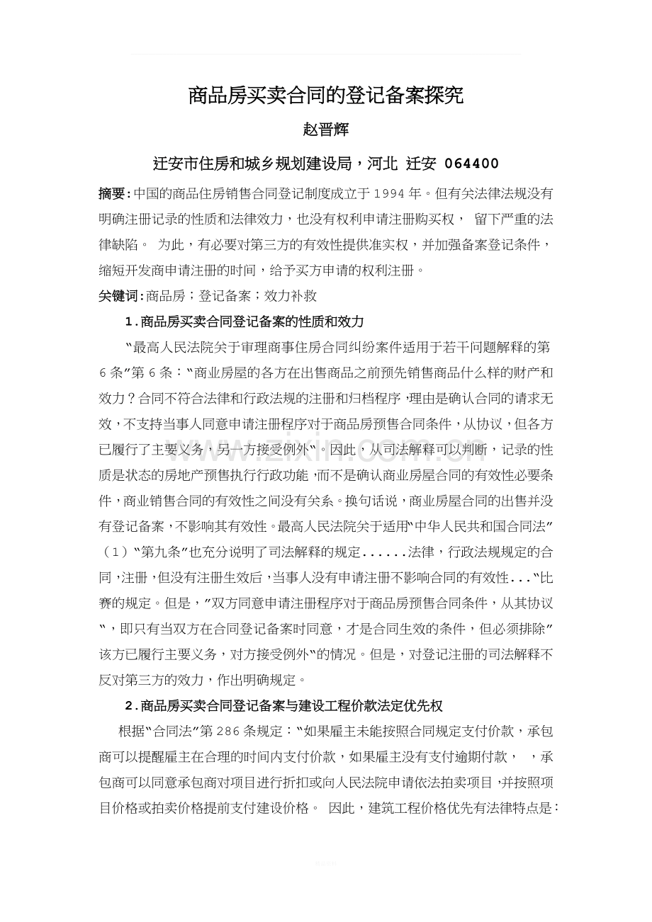 1.商品房买卖合同登记备案的性质和效力