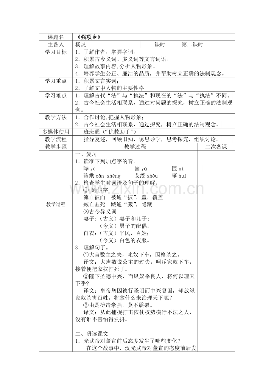 本文是一篇历史人物传记,文中通过记叙“董宣执法”的故事和董宣去世后家中贫困景况,从正、侧面体现了董宣不畏权贵、秉公执法、清正廉洁的高贵品质。课文虽不长,但主次协调,正面、侧面呼应,行文活泼,富于变化。在教学中应注意指导学生分析人物形象及写作特点。