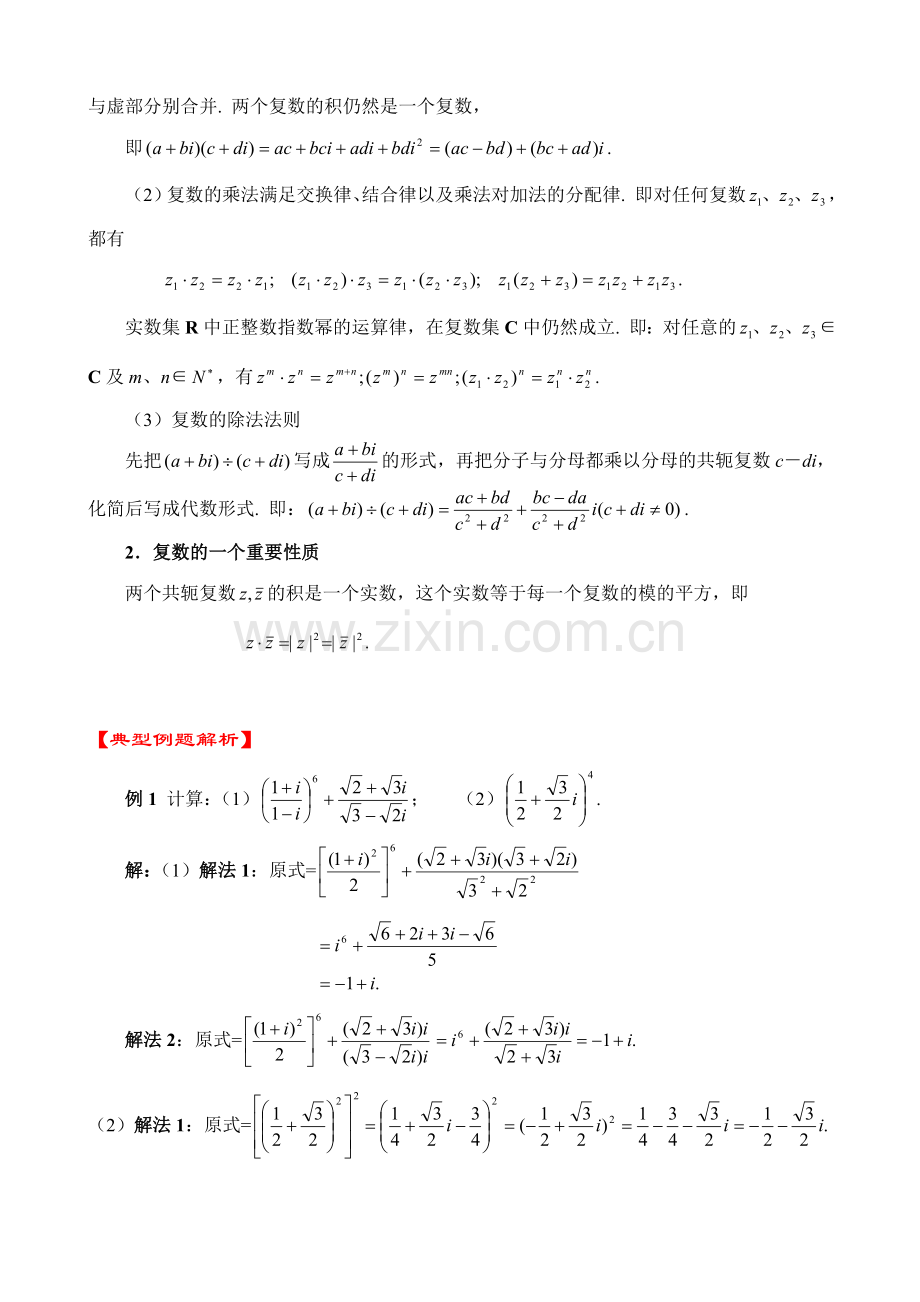 评析:1.计算复数除法时,有如下技巧:,利用此法可对一些特殊类型的计算过程简化;