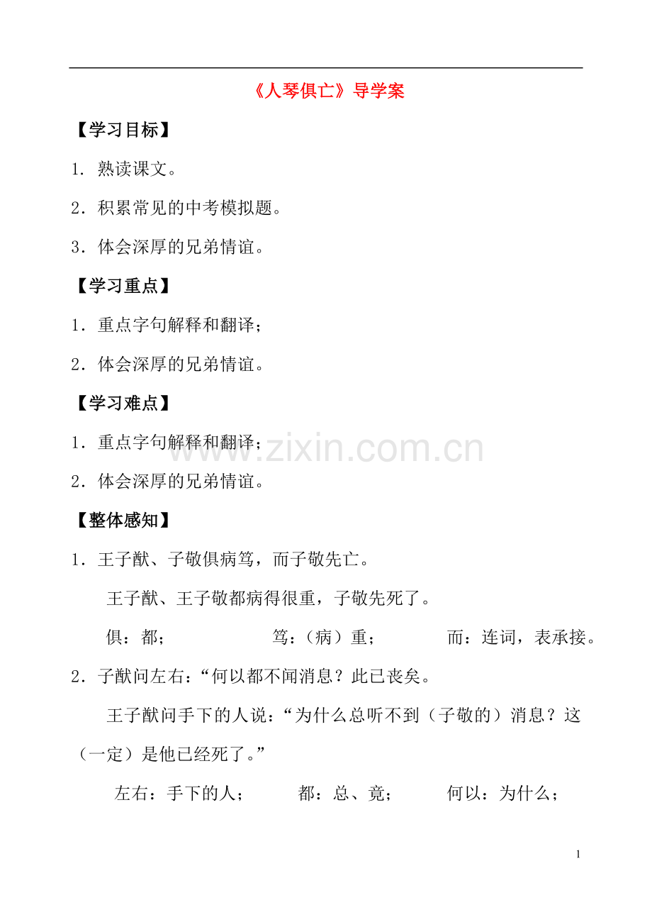 1.王子猷、子敬俱病笃,而子敬先亡。