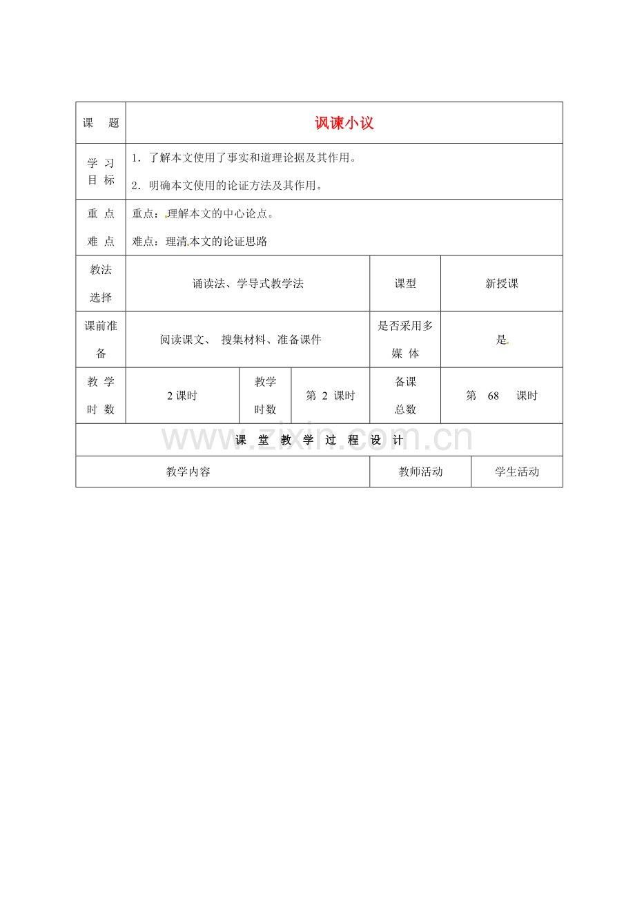 课 堂 教 学 过 程 设 计