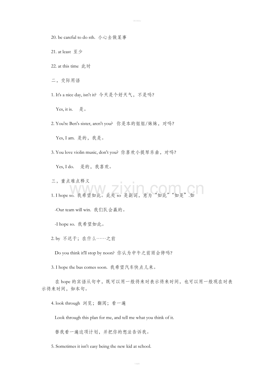 1. I hope so. 我希望如此。此处so 是副词,意为“如此”“如是”.如