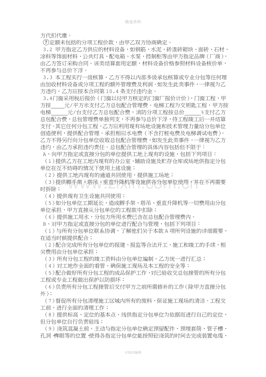 (6)提供施工用水,分包方所用水费已含在总包配合管理费内。