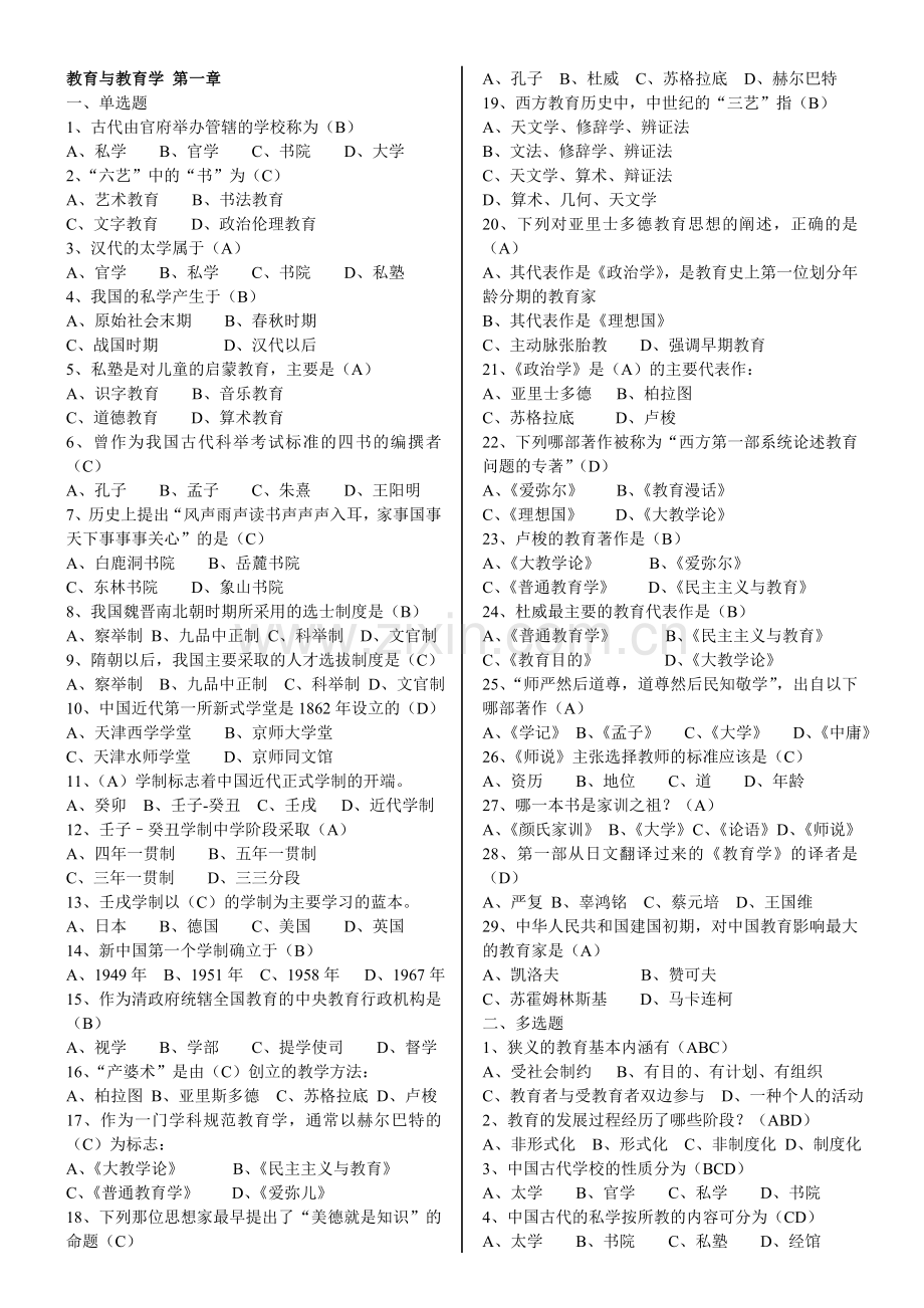 2、教育的发展过程经历了哪些阶段?(ABD)