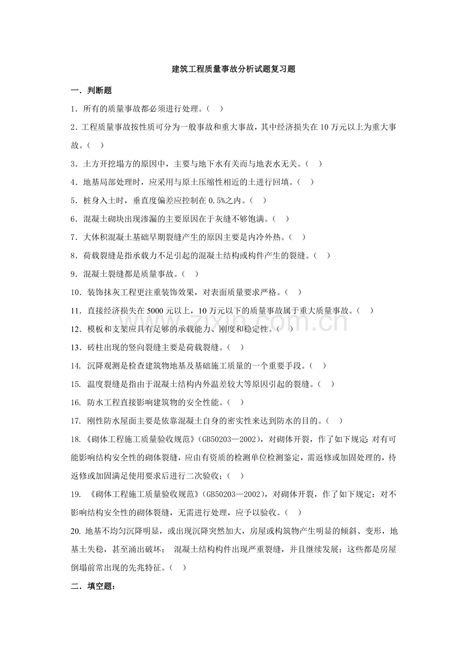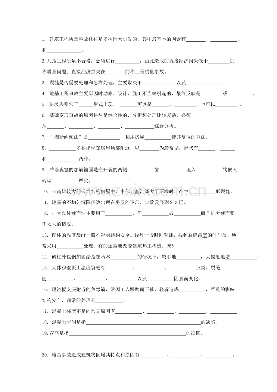 建筑工程质量事故分析试题复习题
