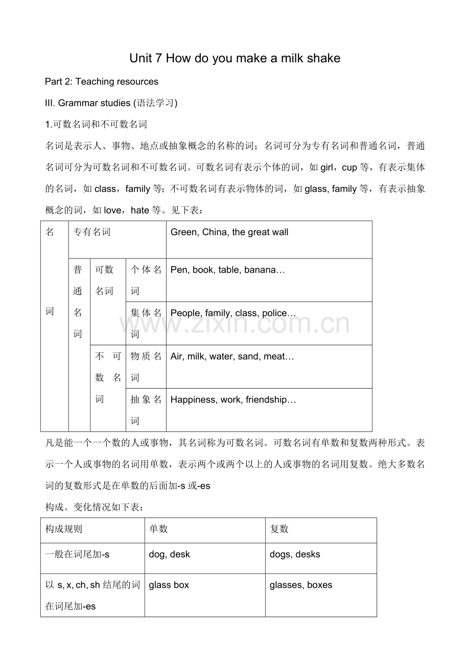 1.可数名词和不可数名词