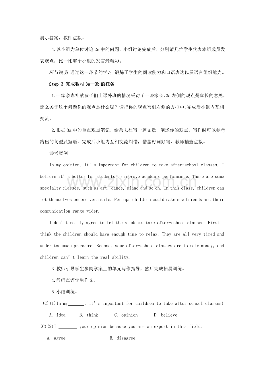 1.一家杂志社就孩子们上课外班的情况采访了一些家长,3a左侧的观点是家长的意见,那么关于这个问题你的观点是什么呢?请把你的观点写到右侧的方框中,完成后小组内互相交流。
