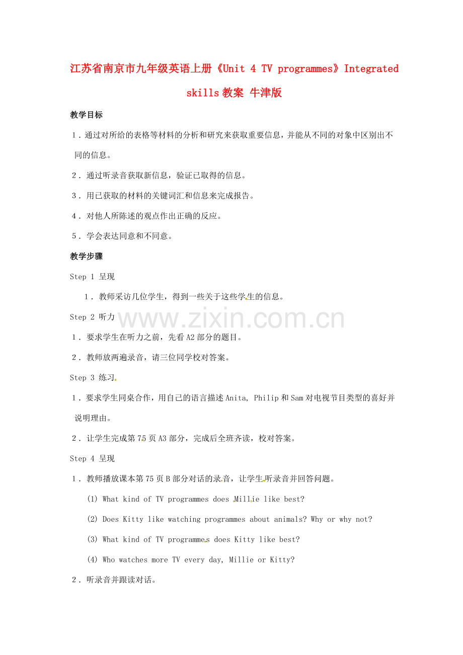 江苏省南京市九年级英语上册《Unit 4 TV programmes》Integrated skills教案 牛津版