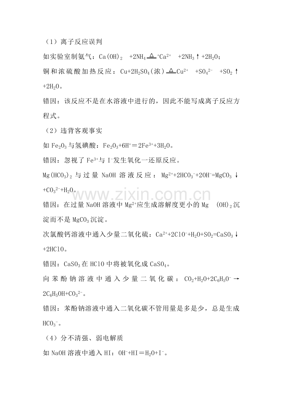 (1)离子反应误判