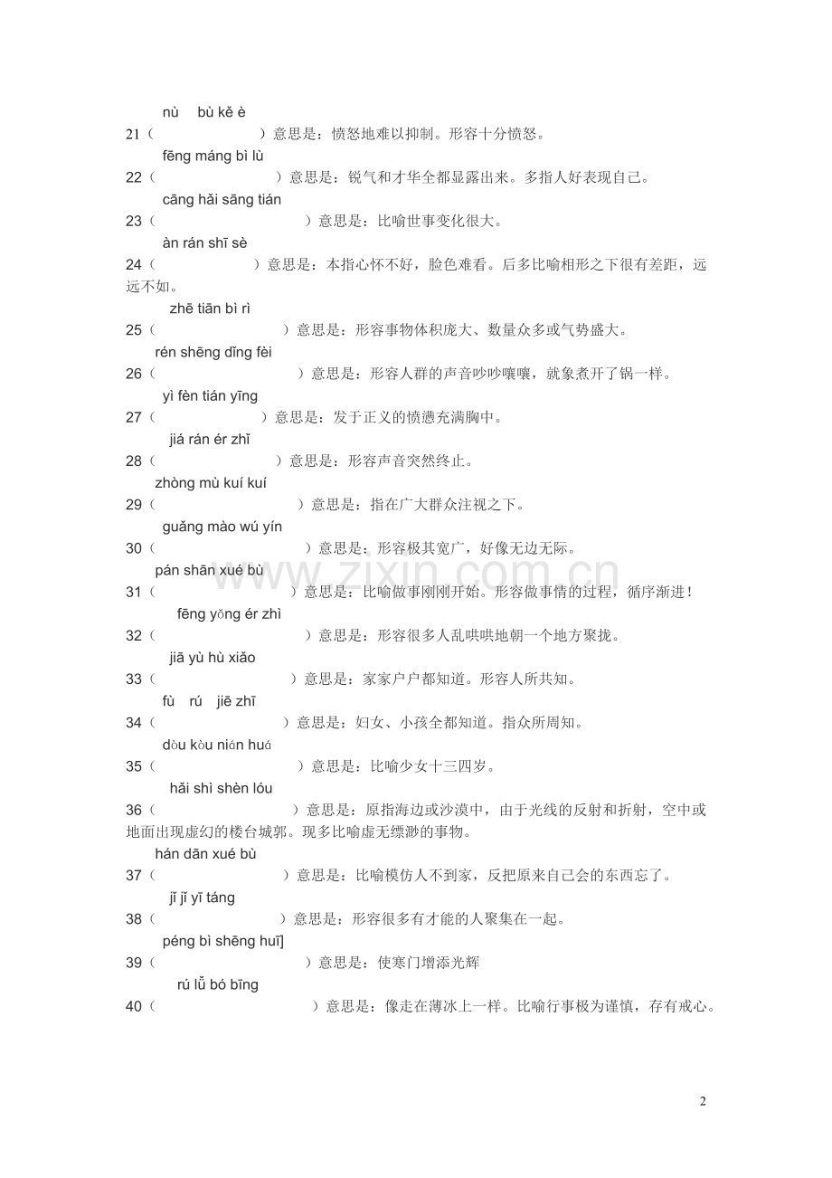 36( )意思是:原指海边或沙漠中,由于光线的反射和折射,空中或地面出现虚幻的楼台城郭。现多比喻虚无缥渺的事物。