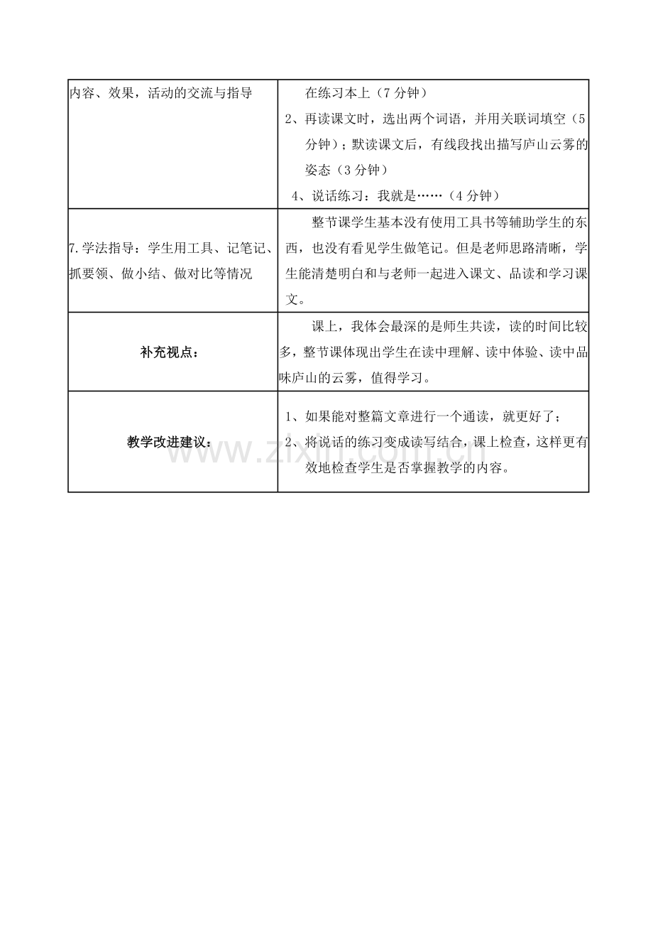 课上,我体会最深的是师生共读,读的时间比较多,整节课体现出学生在读中理解、读中体验、读中品味庐山的云雾,值得学习。