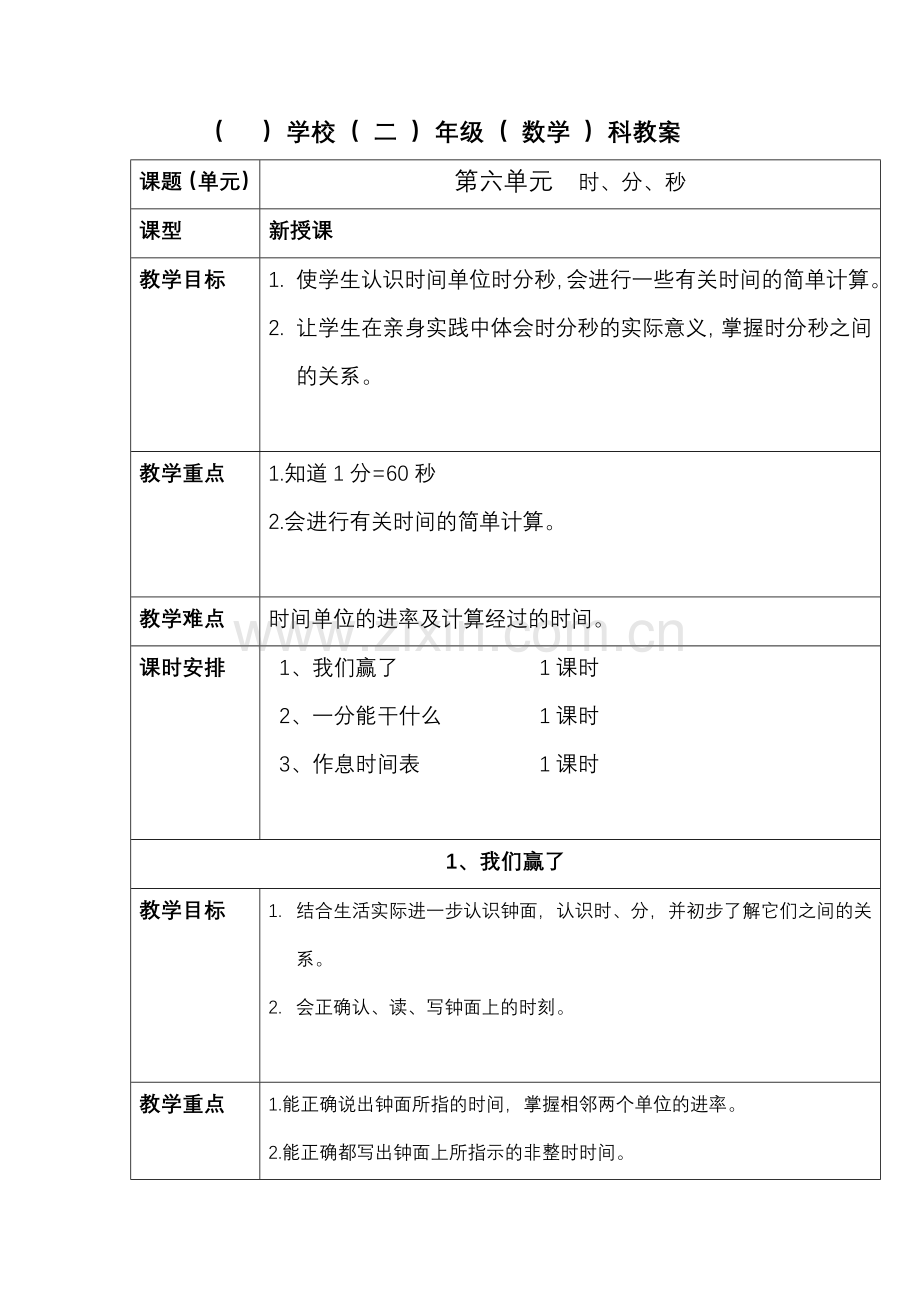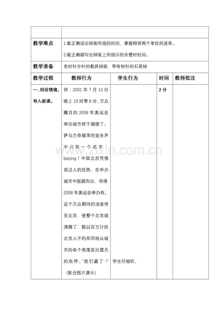 1. 使学生认识时间单位时分秒,会进行一些有关时间的简单计算。