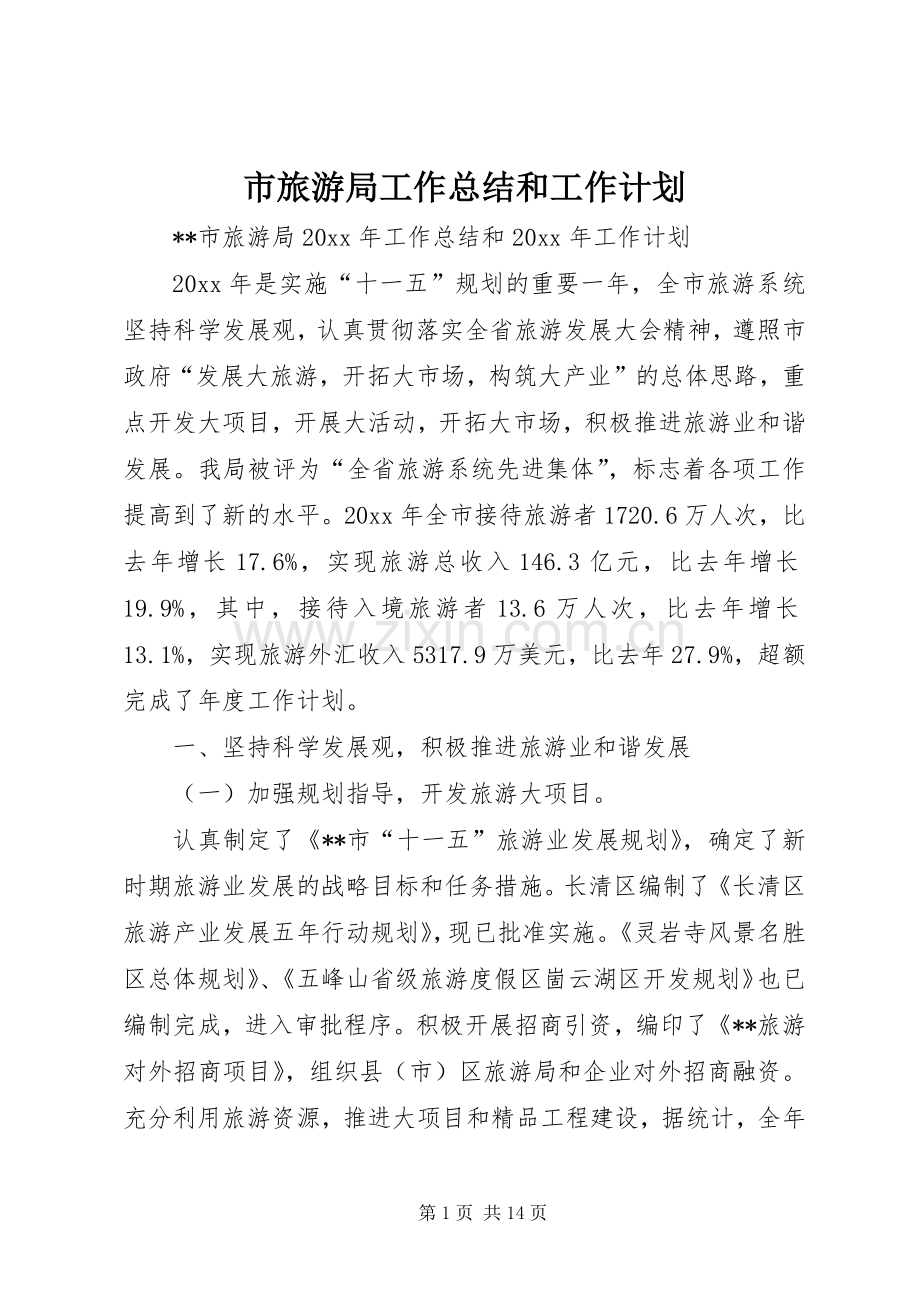 **市旅游局20xx年工作总结和20xx年工作计划