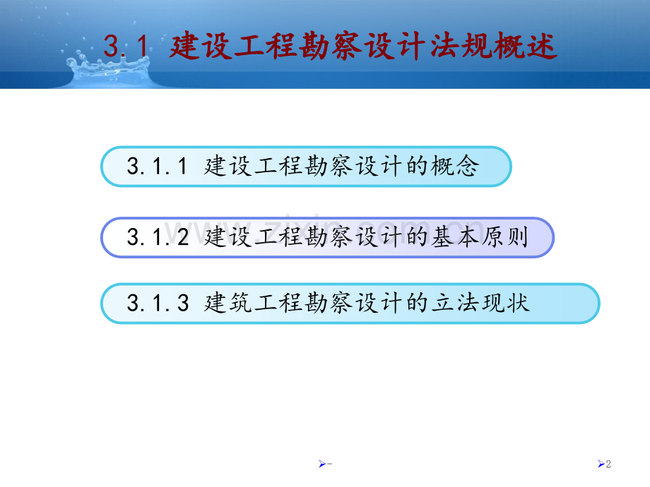 第3章 工程勘察设计法规 3.1 建设工程勘察设计法规概述3.2 建筑工程勘察设计标准3.4 设计文件的编制3.5 施工图设计文件的审查3.6 建设工程勘察设计合同3.3 建设工程勘察设计管理1 1-3.1 建设工程勘察设计法规概述建设工程勘察设计法规概述Click to add Title 3.1.1 建设工程勘察设计的概念Click to add Title 3.1.2 建设工程勘察设计的基本原则 3.1.3 建筑工程勘察设计的立法现状2 2-n建设工程勘察建设工程勘察是指依据建设工程的要求,查是指依据建设工程的要求,查明、分析、评价建设场地的地质地理环境特明、分析、评价建设场地的地质地理环境特征和岩土工程条件,征和岩土工程条件,编制建设工程勘察文件编制建设工程勘察文件的活动。的活动。n建设工程设计建设工程设计,是指根据建设工程的要求,是指根据建设工程的要求,对建设工程所需的技术、经济、资源、环境对建设工程所需的技术、经济、资源、环境等条件进行综合分析、论证,等条件进行综合分析、论证,编制建设工程编制建设工程设计文件设计文件的活动。的活动。3.1.1 建设工程勘察设计的概念3 3-n建设工程勘察设计是一项技术性和政策性都建设工程勘察设计是一项技术性和政策性都很强的活动,建设工程勘察设计的很强的活动,建设工程勘察设计的基本原则基本原则包括以下包括以下5个方面个方面n1、n2、n3、n4、n5、3.1.2 建设工程勘察设计的基本原则4 4-n 20002000年国务院公布实施建设工程勘察设年国务院公布实施建设工程勘察设计管理条例;计管理条例;n 2000 2000年建设部、国家工商行政管理总局修年建设部、国家工商行政管理总局修订建设工程勘察设计合同管理办法,订建设工程勘察设计合同管理办法,制定建设工程勘察合同示范文本、制定建设工程勘察合同示范文本、建设工程设计合同示范文本;建设工程设计合同示范文本;n20062006年建设部制定建设工程勘察设计资年建设部制定建设工程勘察设计资质管理规定质管理规定3.1.3 建筑工程勘察设计的立法现状5 5-6 6-美国:美国当美国:美国当地时间地时间20072007年年8 8月月1 1日晚日晚6 6时时1010分,美国明分,美国明尼苏达州明尼尼苏达州明尼阿波利斯市的阿波利斯市的一座桥梁发生一座桥梁发生坍塌。坍塌。坍塌原因:坍塌原因:年年久失修和久失修和设计设计上的缺陷上的缺陷。伤亡人数:至伤亡人数:至少少7 7人死亡,人死亡,数十人受伤数十人受伤7-8 8-20102010年年1 1月月3 3日下午日下午2 2时时2020分,昆明新机场工程航站区分,昆明新机场工程航站区A3A3标段东引标段东引桥一个即将完成混凝土浇筑的桥跨由于支撑体系失稳突然发生桥一个即将完成混凝土浇筑的桥跨由于支撑体系失稳突然发生垮塌,截止晚垮塌,截止晚8 8时时1515分,已造成分,已造成7 7人死亡、人死亡、8 8人重伤、人重伤、2626人轻伤。人轻伤。3.2 建筑工程勘察设计标准建筑工程勘察设计标准Click to add Title 3.2.1 工程建设标准Click to add Title 3.2.2 工程建设标准的定制与实施1010-工程建设标准是指对基本建设中各类工程的勘察、设计、施工、安装、验收等需要协调统一的事项所制定的标准。1.一、按角度划分:2.1、按标准内容:技术标准、经济标准、管理标准;3.2、按适用范围:国家标准、行业标准、地方标准、企业标准;4.3、按执行效力:强制性标准、推荐性标准。5.二、工程勘察设计标准包括:工程建设勘察设计规范(强制性)、标准设计(推荐性)。3.3.2 2.1 1 工程建设标准工程建设标准3.2.2 工程建设标准的制定与实施(1 1)遵守国家的有关法律、法规及相关方针、政策,密切结)遵守国家的有关法律、法规及相关方针、政策,密切结合自然条件和实际情况,合理利用资源,充分考虑使用、维合自然条件和实际情况,合理利用资源,充分考虑使用、维修的要求和后期运行的情况,修的要求和后期运行的情况,做到安全适用、技术先进、做到安全适用、技术先进、经济合理。经济合理。(2 2)积极开展科学实验或测试验证。)积极开展科学实验或测试验证。(3 3)积极采用新技术、新工艺、新设备、新材料。)积极采用新技术、新工艺、新设备、新材料。(4 4)积极采用国际标准和国外先进标准。)积极采用国际标准和国外先进标准。(5 5)标准条文规定严谨明确、文句简练,不得模棱两可。)标准条文规定严谨明确、文句简练,不得模棱两可。(6 6)注意与现行标准协调)注意与现行标准协调(7 7)发扬民主、充分讨论。)发扬民主、充分讨论。|1.工程建设标准的制定原则1212-3.2.2 工程建设标准的制定与实施 国家标准由国务院建设行政主管部门审查批准,由国务院国家标准由国务院建设行政主管部门审查批准,由国务院标准化行政主管部门统一编号,国务院建设行政主管部门和标标准化行政主管部门统一编号,国务院建设行政主管部门和标准化行政主管部门联合颁布实施。准化行政主管部门联合颁布实施。工程建设行业标准由国务院有关行政主管部门审批、编号工程建设行业标准由国务院有关行政主管部门审批、编号和发布,报国务院建设行政主管部门备案。和发布,报国务院建设行政主管部门备案。工程建设地方标准的制定、审批、发布方法,由省、自治工程建设地方标准的制定、审批、发布方法,由省、自治区、直辖市人民政府制定,但标准发布后应报国务院建设行政区、直辖市人民政府制定,