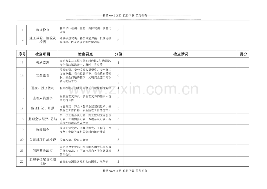 工程名称: 监理单位: 检查日期: 年 月 日 检查人: