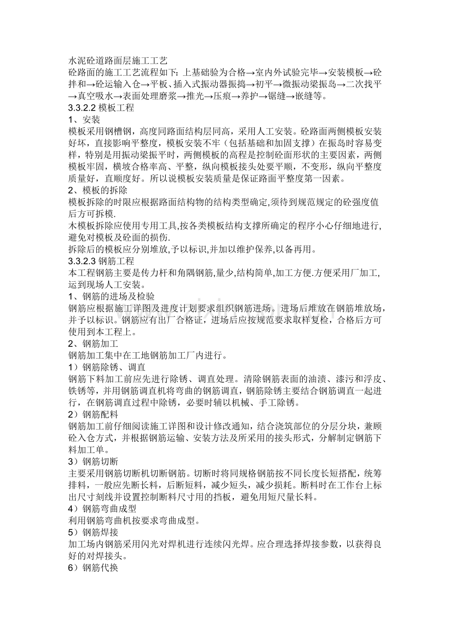 本工程钢筋主要是传力杆和角隅钢筋,量少,结构简单,加工方便.方便采用厂加工,运到现场人工安装。
