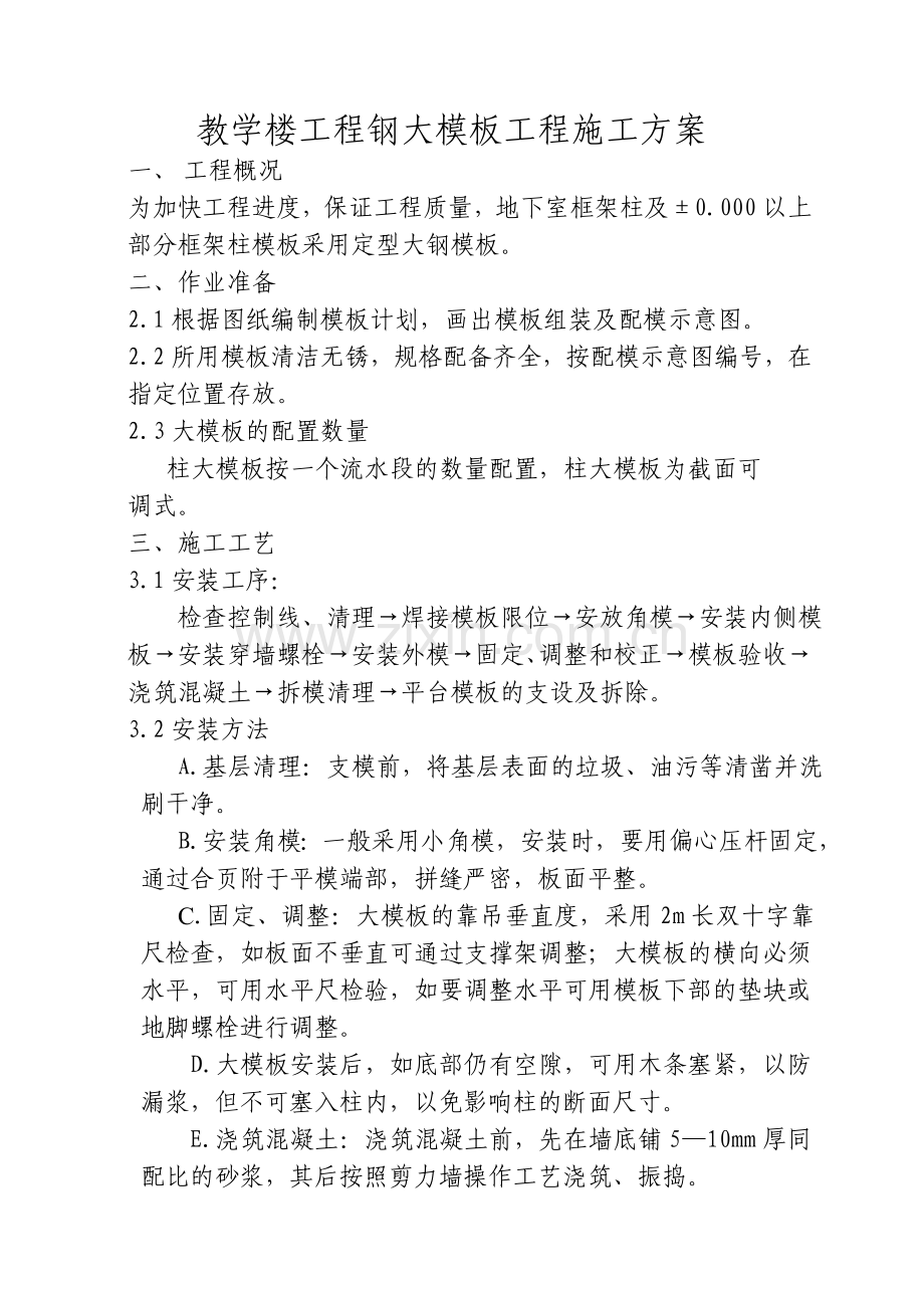 为加快工程进度,保证工程质量,地下室框架柱及±0.000以上部分框架柱模板采用定型大钢模板。