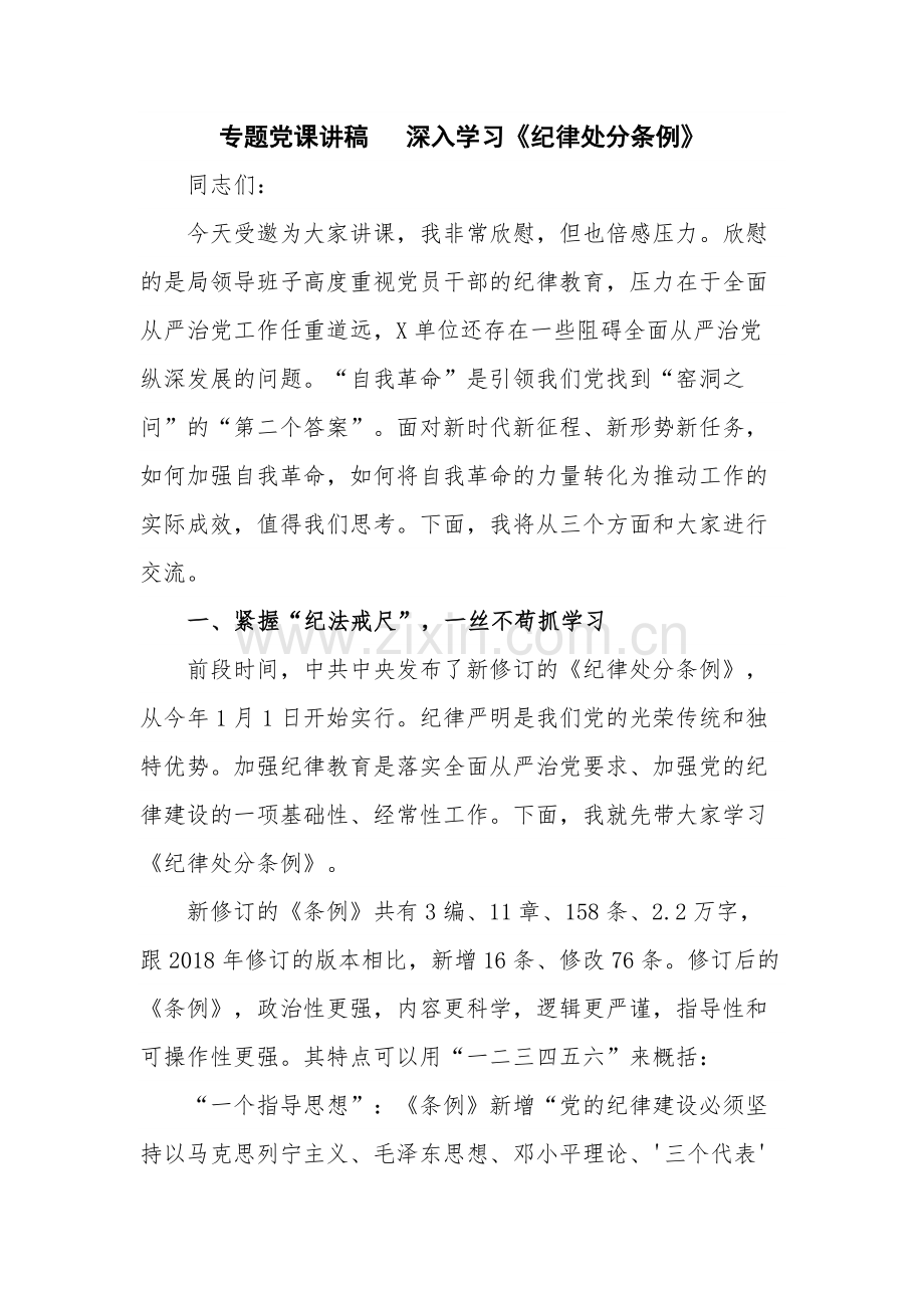 专题党课讲稿 深入学习《纪律处分条例》