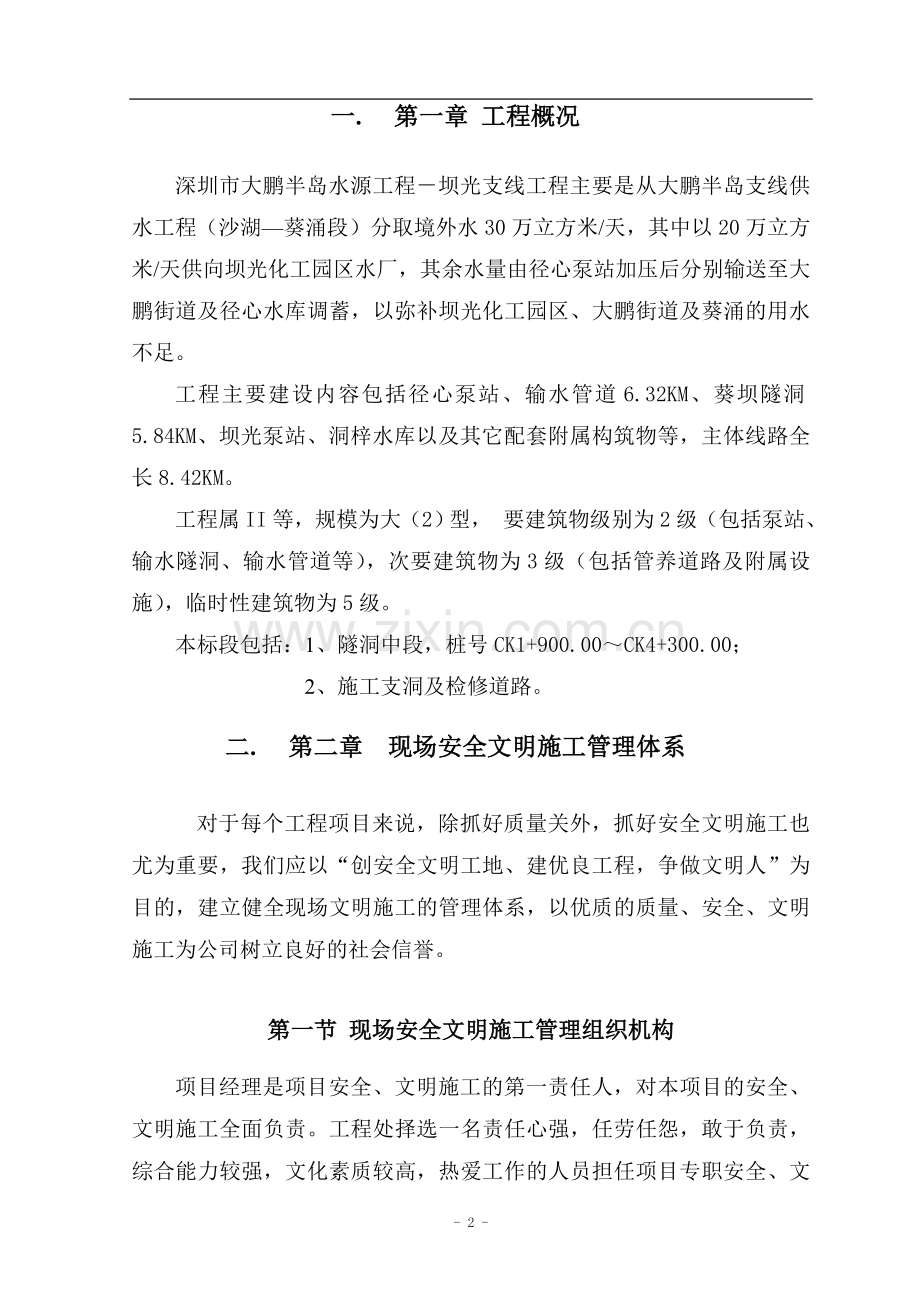 第一节 现场安全文明施工管理组织机构……………………… 2
