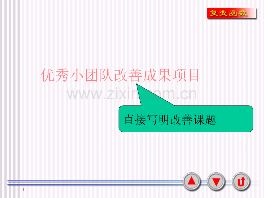 1优秀小团队改善成果项目直接写明改善课题2一、团队成员介绍队 名XXX小团队所属单位XXX生产线成立日期指导顾问队 长队 员平均年龄X岁平均年资X年发表人平均年龄:X岁根据实际的团队成员制作相应的柱状图3二、XXXX改善课题介绍 说明:对小团队改善的具体内容作一简要介绍,若能配合相关图片加以说明,则能让读者对所改善的课题内容有更清晰的了解。图片相关内容介绍4三、小团队活动内容序号问题点现况说明评价项目总分顺位选定队能力急迫性重要性效果性123 点评方式:全体队员举手表决以1人1分,每项目满分10分计算3.1 活动主题选定及理由课题选定中使用的QC工具:简易图表 排列图 直方图 控制图 亲和图 矩阵图 5三、小团队活动内容3.2 改善课题选定背景 说明:改善课题的相关背景资料尽量详实具体,能引起改善队员及上层领导对改善课题的认同,同时更为后续获得改善支持和资源打下基础。相关内容介绍6三、小团队活动内容3.3 综合选题理由阐述 说明:对选题理由的必要性从改善的内部和外部环境作整体的描述,能增强小组成员对改善课题的一致认同。1、2、3、7四、对改善课题的现状调查 根据现场管理三现主义(现场、现物、现状)来掌握事实,不要凭空想象。(何种不良品、不良状况、个数、问题的说明、产生的次品率)用数字、图片、草图的形式,详细、具体、全面的把握现状,用示意图讲解说明,把握现状要清楚、透彻。(注意:只是对现状的描述,而不是分析,分析应在要因解析和现状调查中)现状调查应做到:1、用数据说话;2、对现状数据要进行分析、整理、分类;3、要在现场观察、跟踪,掌握第一手资料。现状调查使用的QC工具:简易图表 排列图 直方图 控制图 亲和图 矩阵图 8五、设定课题改善目标目标制定要遵守的三要素:目标制定要遵守的三要素:在什么时间、做什么事情、要做到什么程度在什么时间、做什么事情、要做到什么程度注意:注意:1 1、通过把握现状确定达到什么目标,确定目标值和完成期限。、通过把握现状确定达到什么目标,确定目标值和完成期限。2 2、不要脱离实际能力,小组成员怎样努力也达不到的目标、不要脱离实际能力,小组成员怎样努力也达不到的目标,这样会降低这样会降低每个人的积极性每个人的积极性3 3、目标设定不要太低,在自己的能力的基础上稍微有所提高,找出努力、目标设定不要太低,在自己的能力的基础上稍微有所提高,找出努力的目标,只要努力就能达到的目标(目标值具有挑战性,能促进小组成的目标,只要努力就能达到的目标(目标值具有挑战性,能促进小组成员的干劲及学习的态度,最大限度的发挥每个人的潜力)。员的干劲及学习的态度,最大限度的发挥每个人的潜力)。目标设定使用的QC工具:简易图表 直方图 控制图 9六、要因解析 应用因果图(鱼刺图、特性要因图)、柱状图、系统图等进行分析,利用脑力风暴法(5W2H、5次为什么等)来探讨发生偏差的原因(小组全员参与)10六、要因解析要因确认项项目目可能原因可能原因验证内容及经过验证内容及经过结论说明结论说明判定判定(或或)人人机机料料法法原因分析常用统计工具:因果图 系统图 关联图 11七、活动计划活动活动步骤步骤项目项目负责人负责人活动时间活动时间参加人员参加人员8月月9月月10月月11月月P P数据收集数据收集a全员全员要因分析要因分析bb b把握重要要因把握重要要因c全员全员对策思考对策思考d全员全员D D对策实施对策实施ee eC C效果确认效果确认ff fA A标准化和管理的固化标准化和管理的固化g全员全员成果评价成果评价h全员全员反省及今后计划反省及今后计划i全员全员制订计划常用的QC工具:调查表 简易图表 系统图 矩阵图 PDPC法 矢线图 优选法 正交实验法12八、计划实施序号要因措施目标责任人完成日期1234 对即将采取的对策与措施从可行性、经济性、效益性等方面进行严格评估与筛选,以确定最佳实施方案、实施周期和相对应负责人13八、计划实施措施实施1措施实施2 实施过程中如出现残留问题或出现的新问题,要重新进行要因分析制定对策并实施(按PDCA循环)14九、效果确认改善后数据收集效果确认常用的QC工具:调查表 简易图表 排列图 直方图 控制图 散布图采取了一系列的措施之后,通过图表、数据的统计,一目了然。15九、效果确认改善目标的达成情况改善前改善后 说明:通过图表的使用,改善前后的情况一目了然。16九、效果确认有形效果改善前/后比较17九、效果确认无形效果改善前/后比较评评 价价自我评价自我评价顾问评价顾问评价着眼点着眼点前前后后前前后后员工士气手法运用熟练改善能力提升品质意识提升积极性团队协调性合 计确 认每一项满分每一项满分为为5 5分分18十、标准化问题点原有标准新标准实施日期管理编号负责人改进措施手册化;规格规范化;作业方法标准化;制定一套任何人来做,都不会出差错的作业安排和作业流程。标准化常用的QC工具:调查表 简易图表 直方图 控制图 19十、标准化效果维持20十一、反省总结及下步工作计划项目项目活动内容活动内容活动检讨活动检讨未来努力方向未来努力方向(下步计划)(下步计划)优点优点缺点缺点 将整个实施过程反省总结或改善过程中不顺利的地方持续改善。不要讲空话、大话,针对改善项目横向、纵向制定后期的改