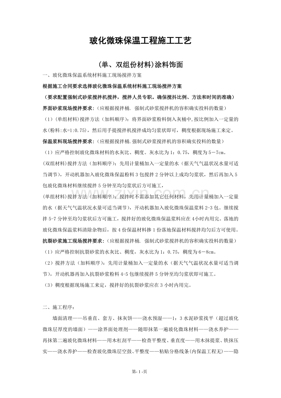 一、玻化微珠保温系统材料施工现场搅拌方案