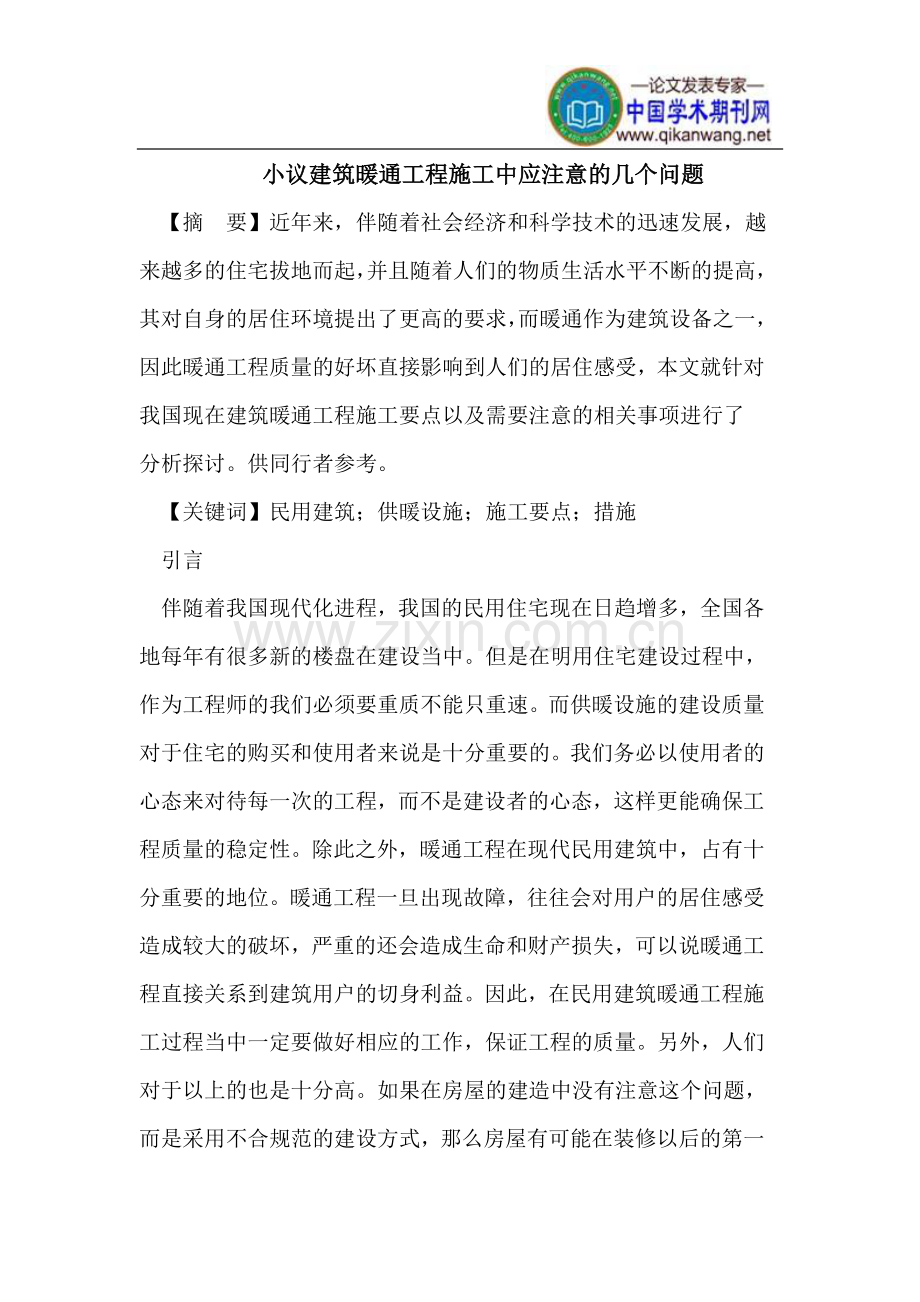 二、民用建筑暖通工程的施工中应注意的几个问题