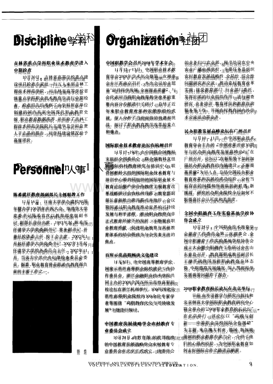 学科 社团吉林省重点学科职业技术教育学进入中国职教学会召开年学术年会的业务归口农业部,秘书处设在中央中期检查月日,中国职业技术教农业广播电视学校,主要任务是组织月,吉林省高等学校重点建育学会年学术年会暨第二次理事农村教育发展战略性、全局性、综合性设项目检查专家组一行五人来到吉林工会在江苏南京召开。本次会议的主题问题研究和交流;推动农村教育改革程技术师范学院,对吉林省高等学校省是“坚持科学发展,全面提高质量”。与实践;接受教育部门、行业部门委托,级重点学科职业技术教育学进行中期检会代表对当前职业教育教学改革的重发挥社团的行业组织作用;进行调查查,检查组先后考察了由学科所在单位要内容分专题进行了研讨,总结了近研究、业务培训、教育评估和教育咨询创建的国内首家中国现代职业教育史年来职业教育改革和发展取得的成服务等工作;开展农村教育国内外学馆、职业教育数据库等,并听取了吉林工就,深入分析了当前面临的机遇和挑术交流活动等业务。程技术师范学院院长王建华及学科负责战,探讨了职业教育教学改革的重点人于志晶的报告,对学科建设情况给予和难点。民办职教发展高峰论坛在广州召开高度评价。月日,由中国职业技术国际职业技术教育论坛在杭州召开教育学会主办的“中国改革开放周月日,由中国联合国教科年与民办职业教育发展高峰论坛”在文组织全国委员会、联合国教科文组广州召开。论坛以“在新形势下如何加人事织国际农村教育研究与培训中心、联强民办职业教育的内涵建设,不断提合国教科文组织国际职业技术教育与高质量”为切人点,总结中国民办职业培训中心等共同组织的国际职业技术教育改革和发展的成功经验,分析当教育论坛暨产学合作教席工程教育改前存在的问题和所面临的新机遇、新陈希就任教育部副部长主抓职教工作革战略研讨会在杭州开幕,教育部副挑战,研究民办职业院校今后如何不月,江南大学举办建校周部长章新胜出席开幕式并致辞。会议断提高社会认可度和美誉度。年暨办学 周年庆祝大会。原清华大学期间通过职业教育推动世界的可持续党委书记陈希首次以教育部党组副书发展与和平进程、推动职业教育在非全国中职德育工作实验基地学校协记、副部长身份出席。年起,陈希历正式教育环境下的发展、不断提高职作会成立任清华大学党委副书记、常务副书记,并业教育质量、促进职业教育与其他教月日,中国职业技术教育学兼任校体委主任、校工会主席。年育体系的结合等成为与会代表关注的会德育工作委员会第二次理事会、全月起任清华大学党委书记,年月起焦点国中职德育工作实验基地学校协作会任清华大学校务委员会主任。年成立大会暨中职德育工作研讨会在山月,当选为中共中央纪律检查委员会委百所示范高职畅谈文化建设东青岛召开。教育部职成教司副司长员。据悉,职业教育将是陈希在教育部负,日,由中国高等教育学会、王继平就我国当前职业教育总体态责的主要工作之一。国家示范性高等职业院校建设工作协势、中职德育发展情况、深入贯彻科学作委员会、浙江金融职业技术学院共发展观等问题作了报告。同主办的全国百所示范性高职院校论坛在浙江杭州举行。所国家示职业教育校长论坛在北京举行范性高等职业院校的余位专家学日前,由外语教学与研究出版社和者等围绕“高职教育文化与可持续发北京师范大学国际职业教育研究中心展”主题进行探讨。联合举办的“职业教育校长论坛”在北京举行。该论坛以“实践与创中国教育发展战略学会农村教育专新中等职业学校国际合作展望”业委员会成立为主题,来自澳大利亚、德国、新加坡月日,由教育部、民政部批准 等国的职业教育专家与会,介绍了他的中国教育发展战略学会农村教育专们的心得和经验,为中国职业教育如陈希业委员会在北京正式成立。该委员会何走好国际合作之路进言献策。