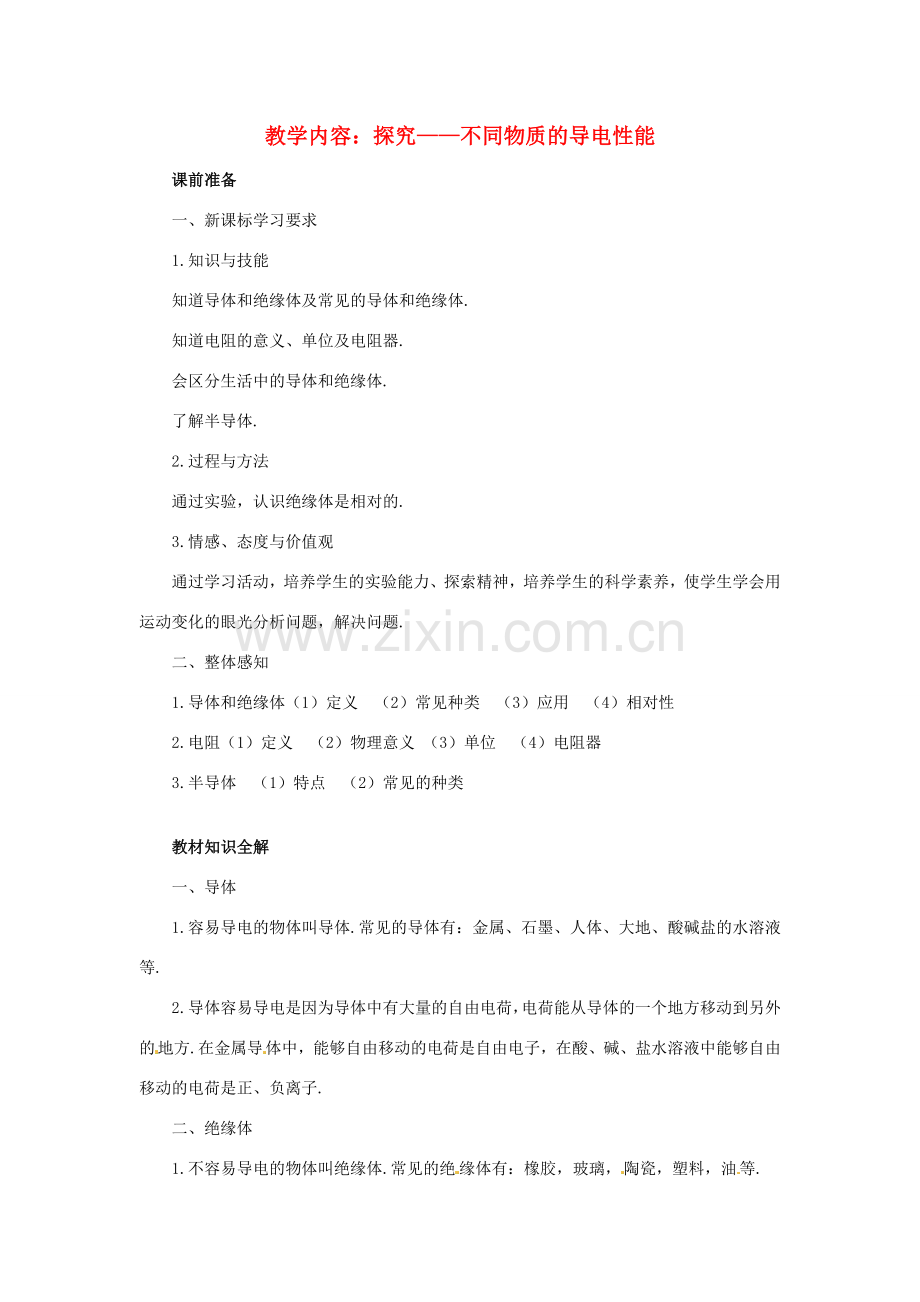 教学内容:探究——不同物质的导电性能