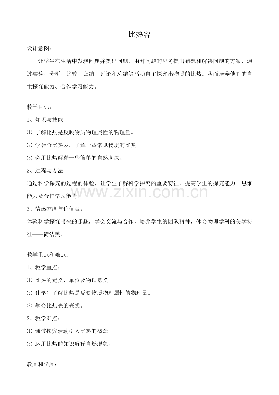 ⑵ 让学生了解比热是反映物质物理属性的物理量。