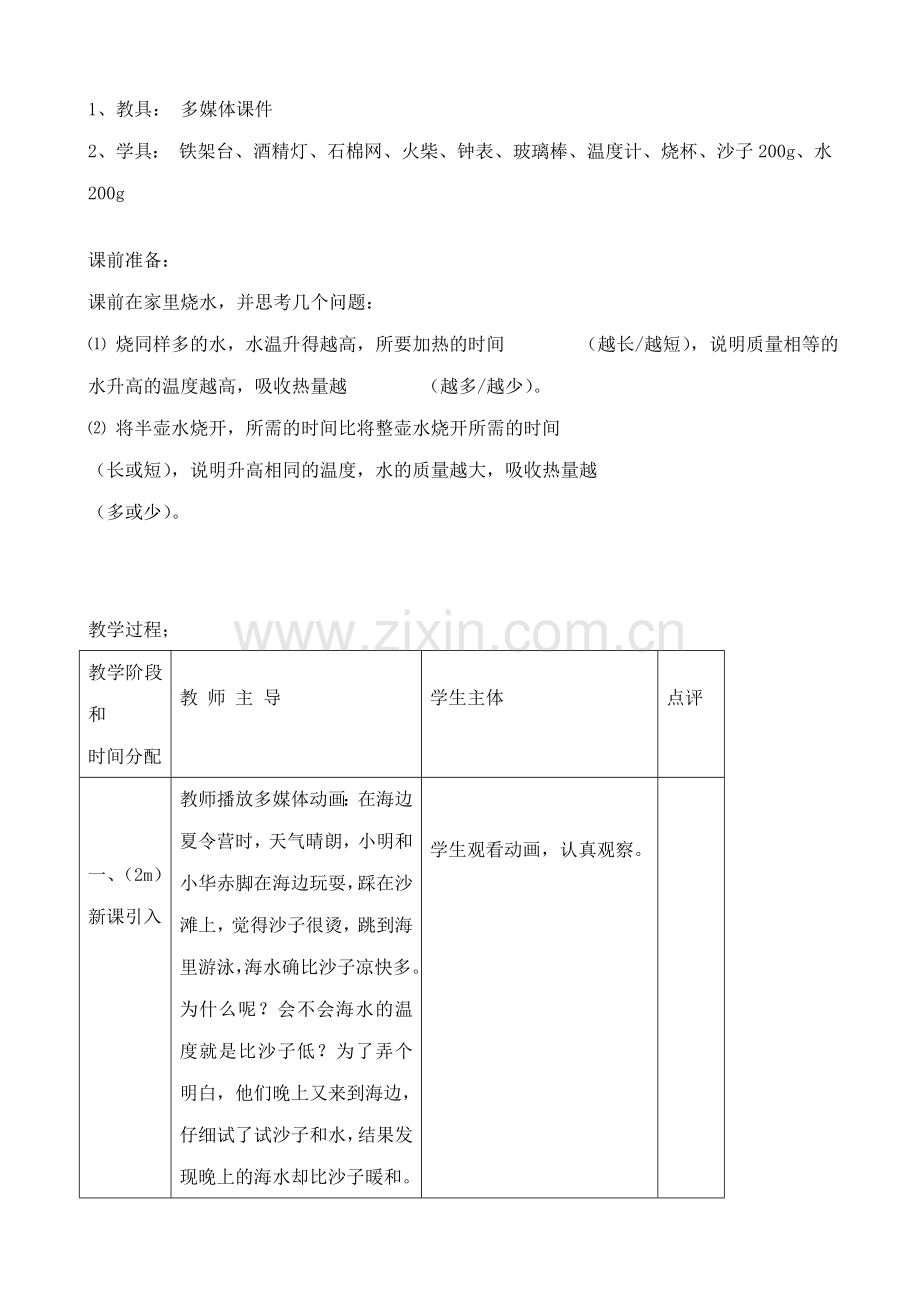 2、学具: 铁架台、酒精灯、石棉网、火柴、钟表、玻璃棒、温度计、烧杯、沙子200g、水200g