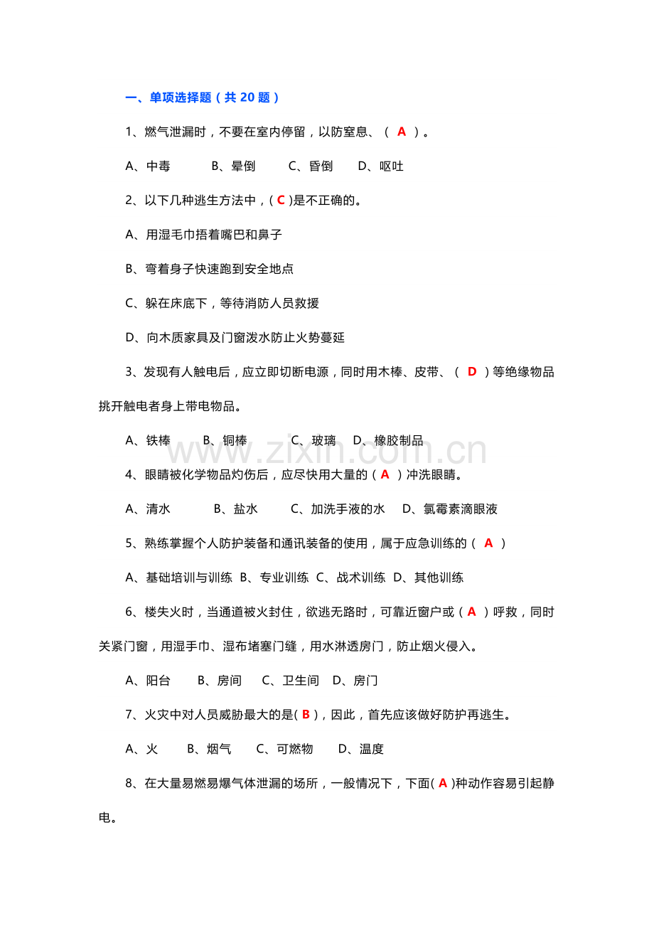 一、单项选择题(共20题)