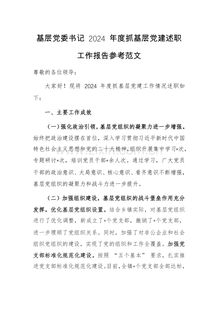 基层党委书记 2024 年度抓基层党建述职工作报告参考范文