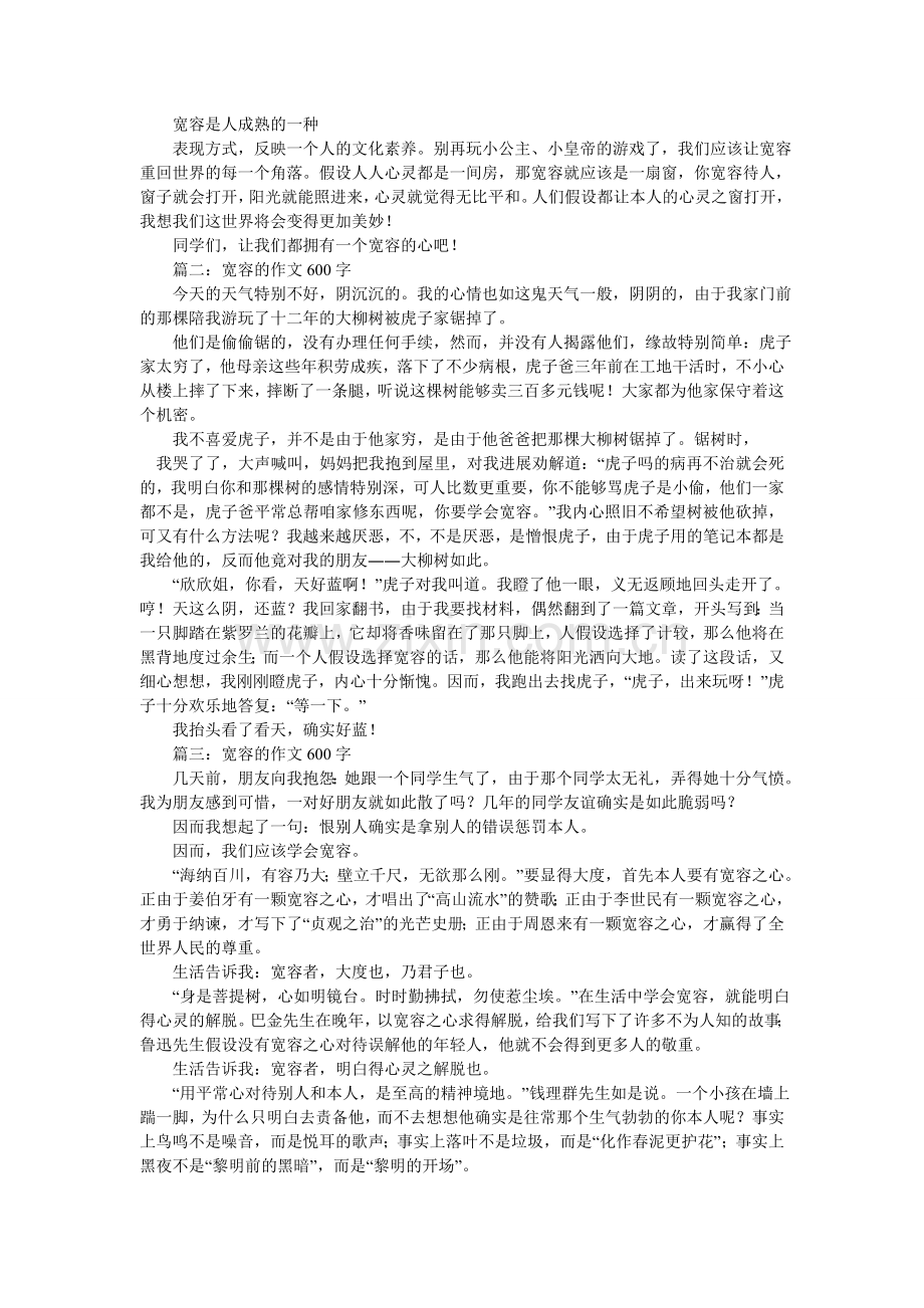 篇三:宽容的作文600字
