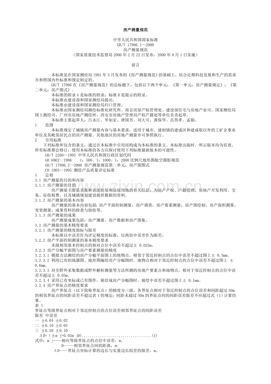 GB/T 17986在《房产测量规范》的总标题下,包括以下两个单元:《第一单元:房产测量规定》;《第二单元:房产图式》。