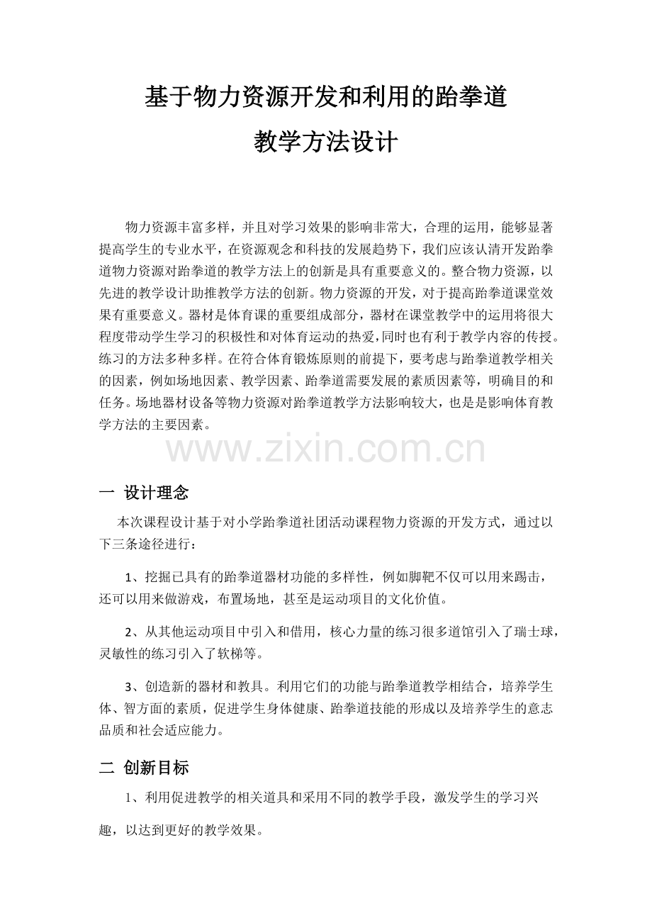 本次课程设计基于对小学跆拳道社团活动课程物力资源的开发方式,通过以下三条途径进行: