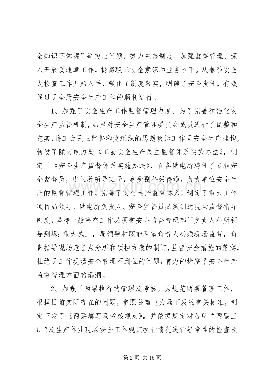 全面检查了安全工器具。对各所安全工器具进行了电力局工作总结第2页