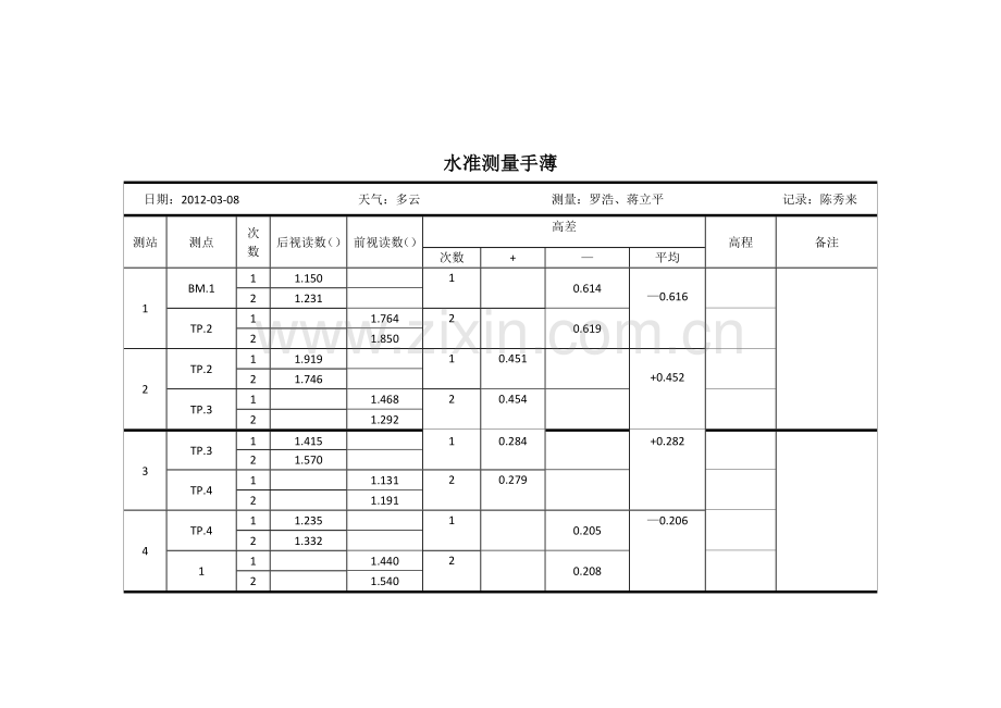 日期:2012-03-08 天气:多云 测量:罗浩、蒋立平 记录:陈秀来