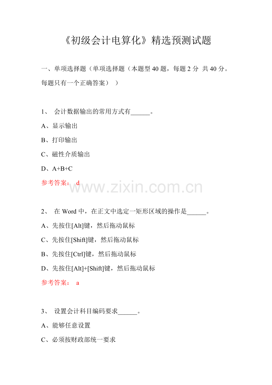 一、单项选择题(单项选择题(本题型40题,每题2分 共40分。每题只有一个正确答案) )
