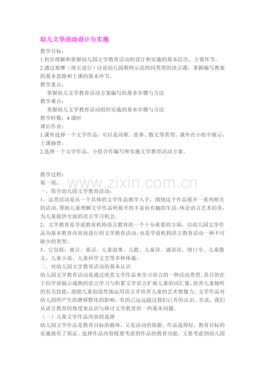 1.运用幼儿园文学教育活动的理论部分内容和观摩幼儿园教师组织活动的知识积累,选择合适的教学内容、采用恰当的教学方法在幼儿园实施文学教育活动。