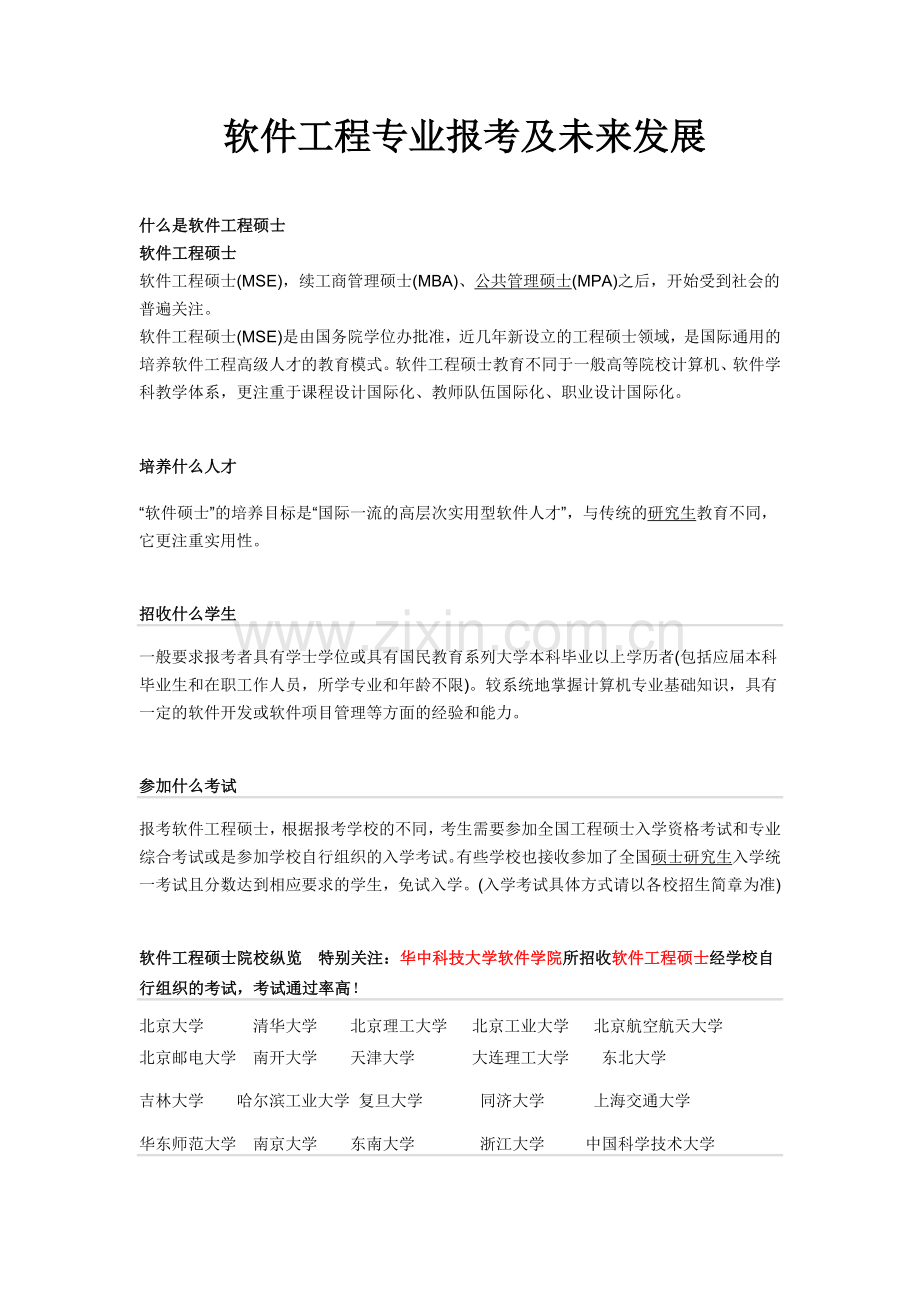 软件工程硕士(MSE),续工商管理硕士(MBA)、公共管理硕士(MPA)之后,开始受到社会的普遍关注。