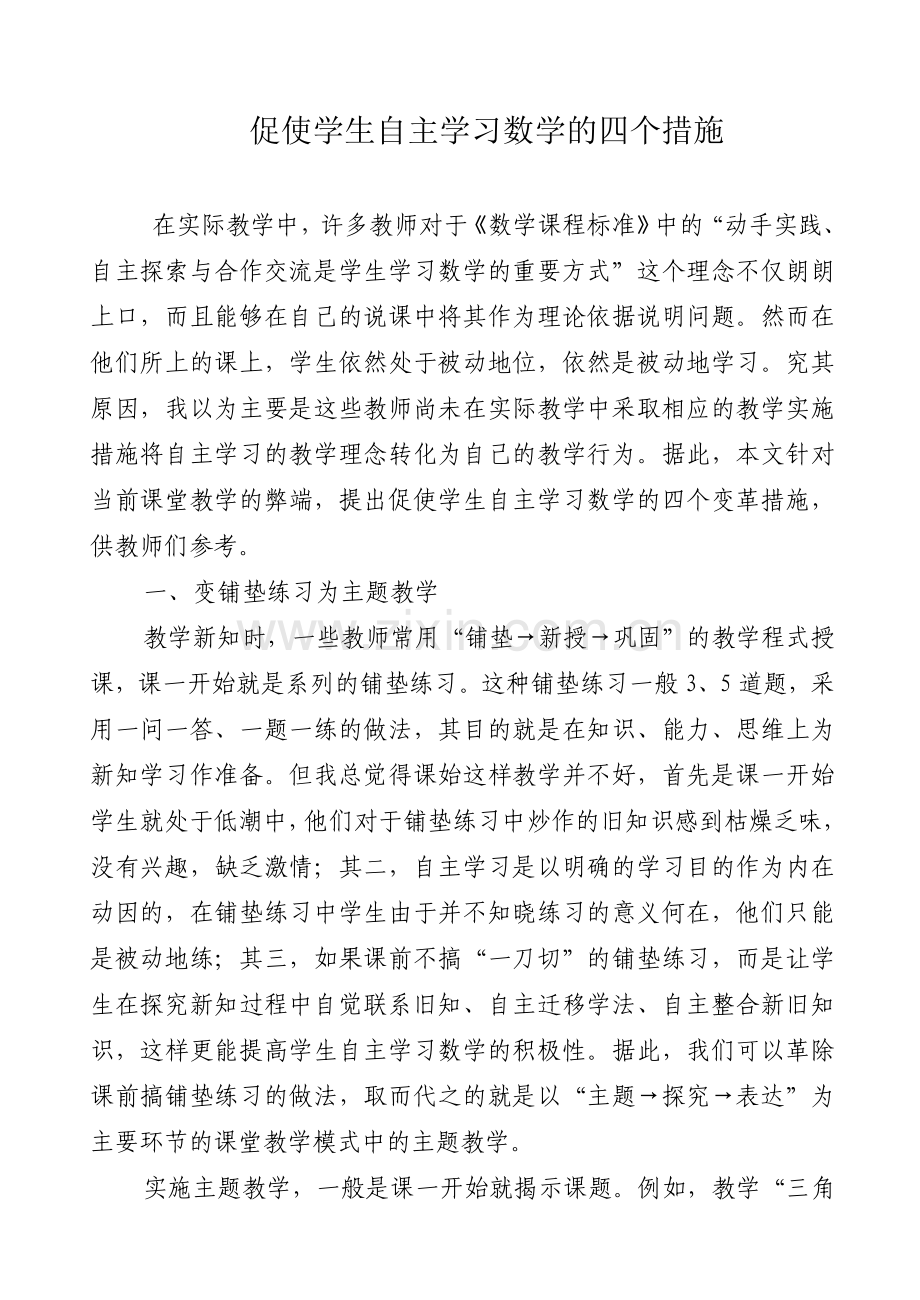促使学生自主学习数学的四个措施