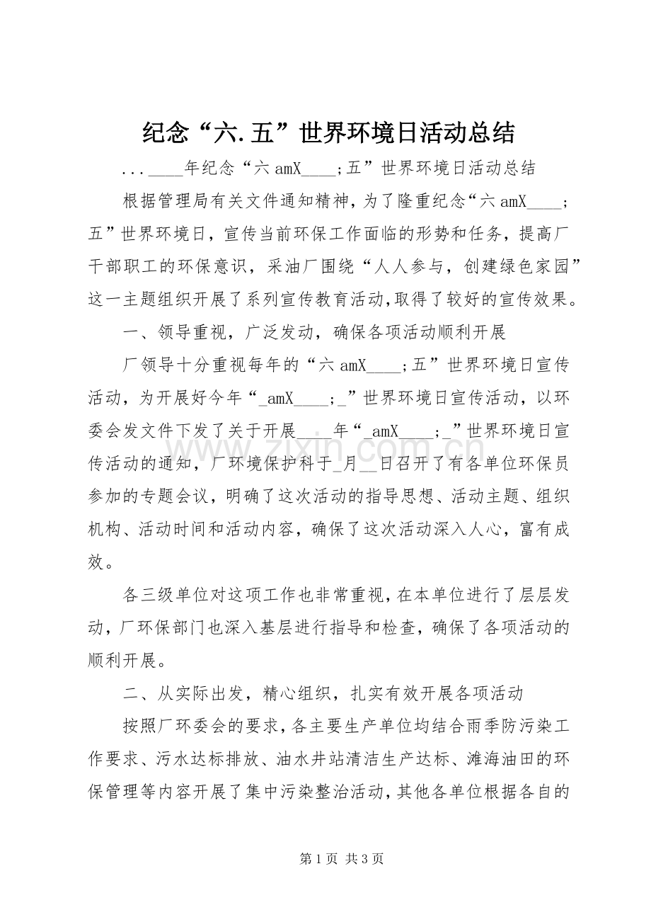 _月_日期间,在各三级单位机关驻地举办了纪念“六amX____;五”世界环境日板报展,共展出精心制作的板报__余块,悬挂横幅__条,《新闻》对桩一生产管理区、桩二生产管理区等单位在环保工作方面好的经验及作法进行了专题报导。