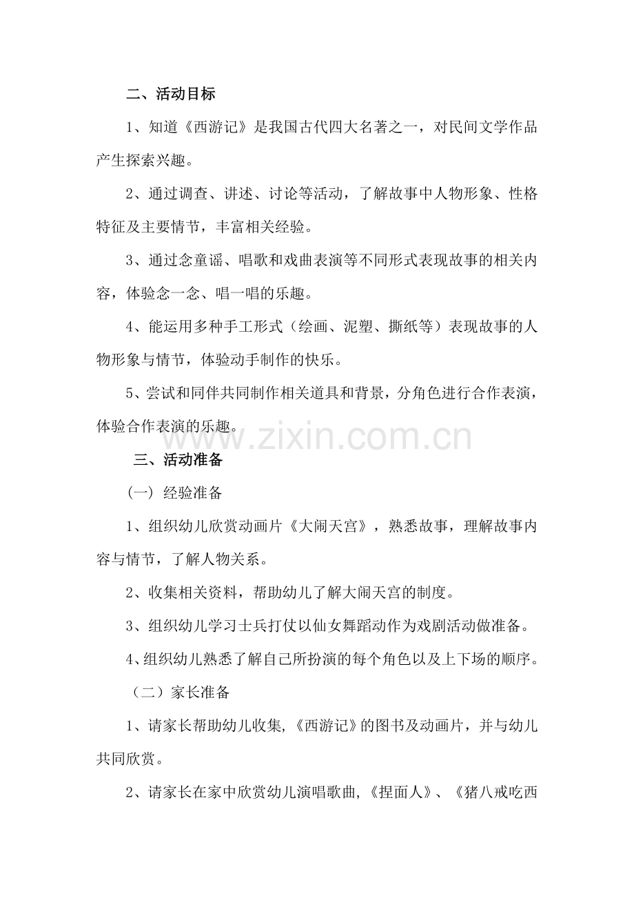 2、喜欢读《西游记》故事,能够说出故事的主要角色和内容。