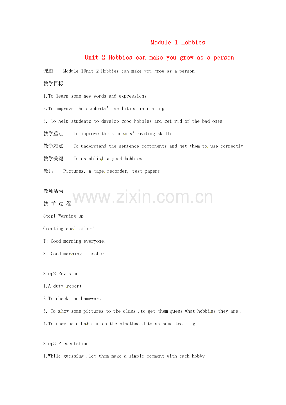 课题 Module 1Unit 2 Hobbies can make you grow as a person