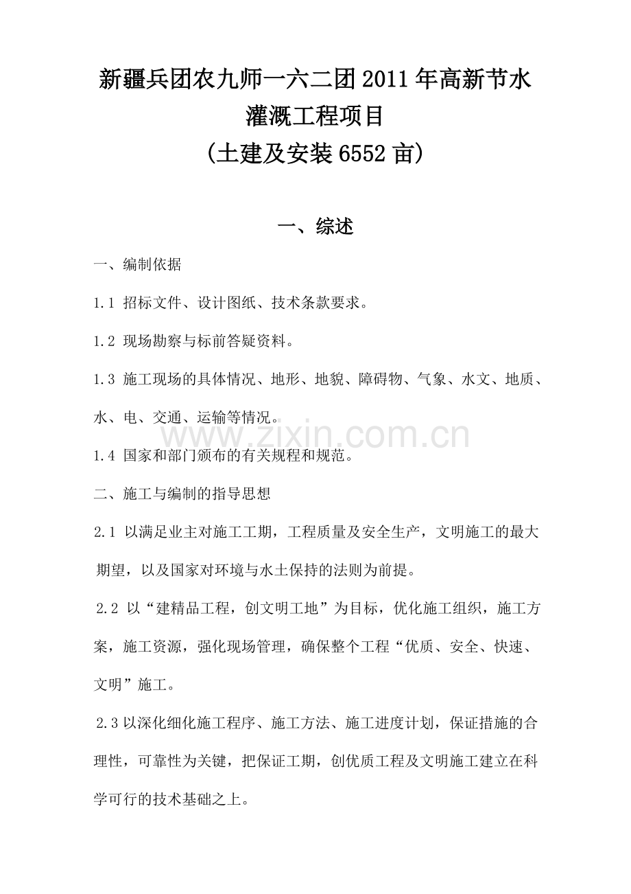 新疆兵团农九师一六二团2011年高新节水灌溉工程项目