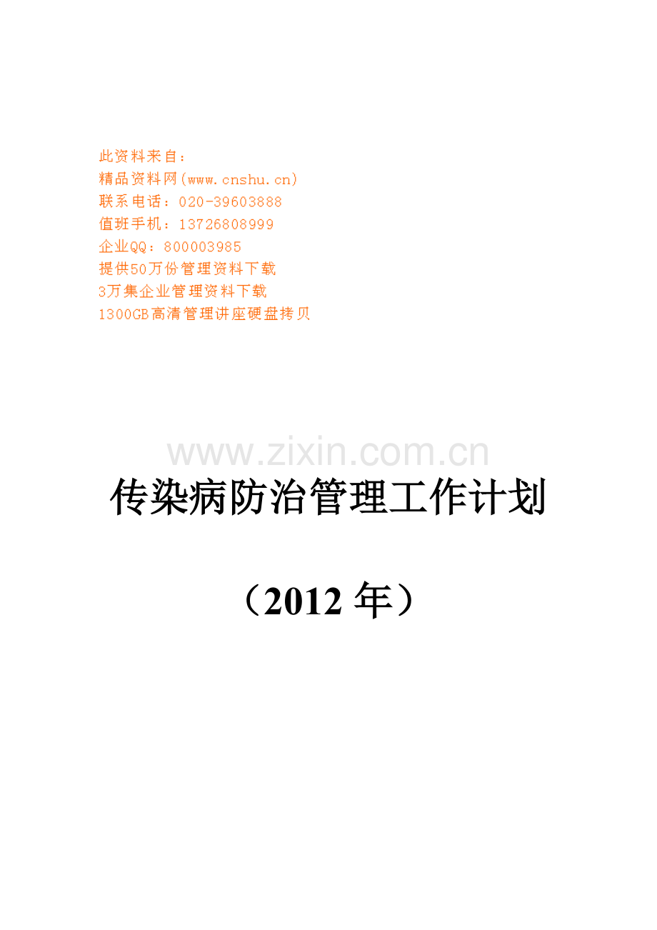 传染病防治管理工作计划