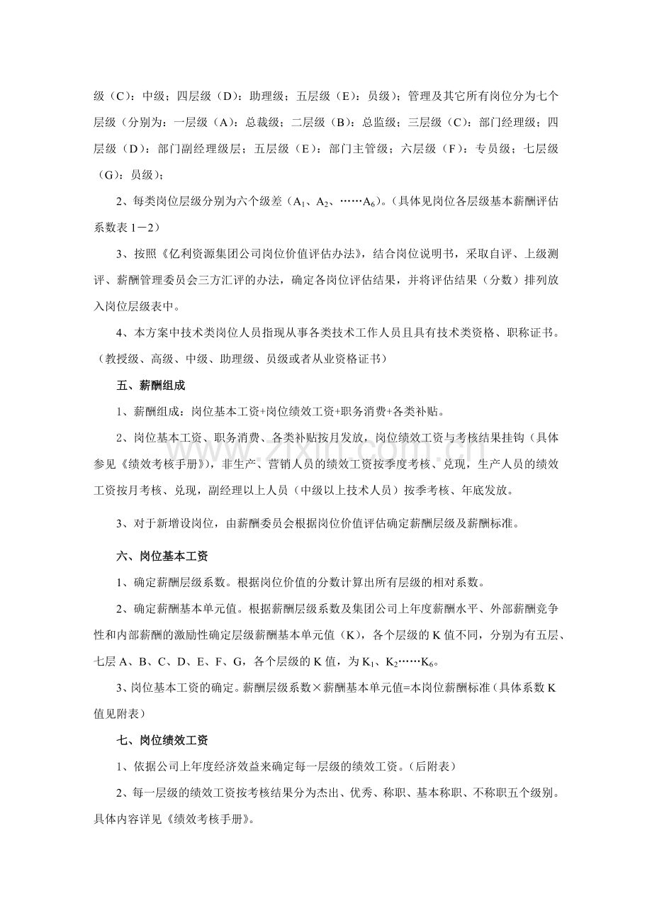 2、每类岗位层级分别为六个级差(A1、A2、……A6)。(具体见岗位各层级基本薪酬评估系数表1-2)