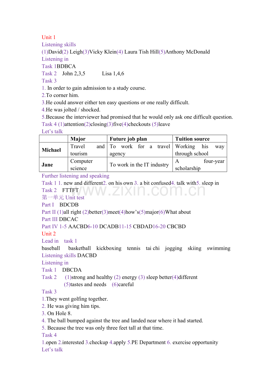 Part II (1)all right (2)better(3)meet(4)how’s(5)major(6)What about