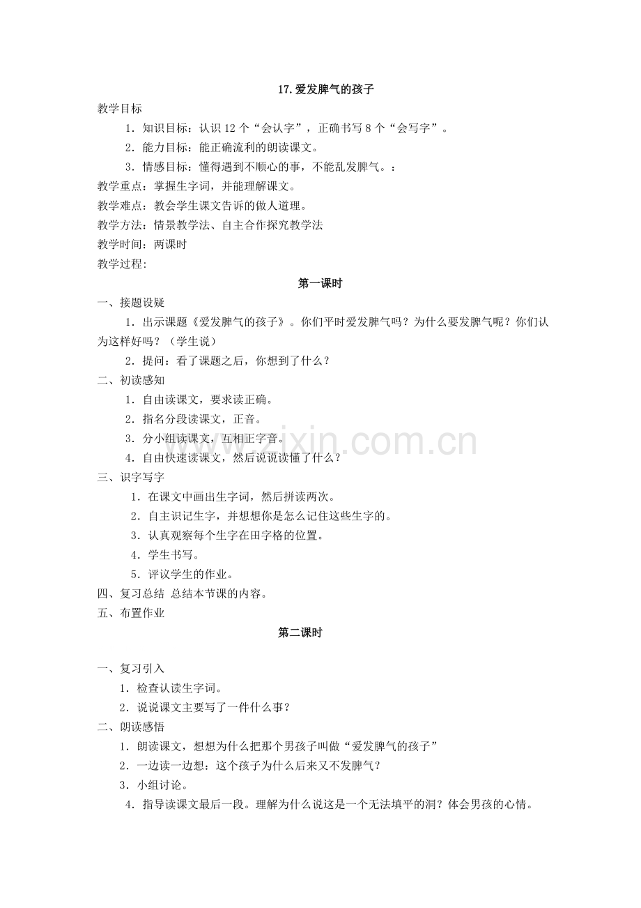1.朗读课文,想想为什么把那个男孩子叫做“爱发脾气的孩子”