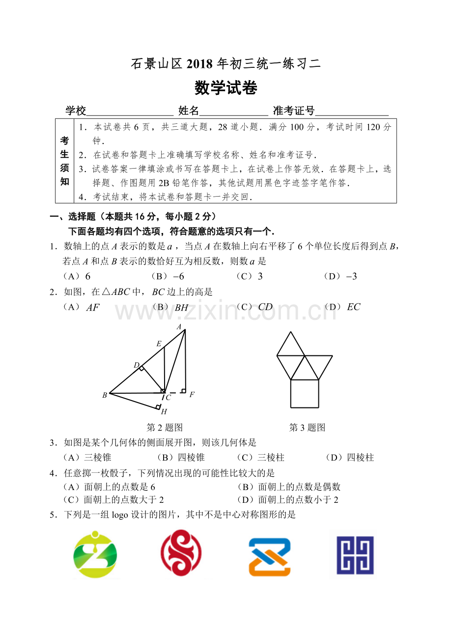 1.本试卷共6页,共三道大题,28道小题.满分100分,考试时间120分钟.